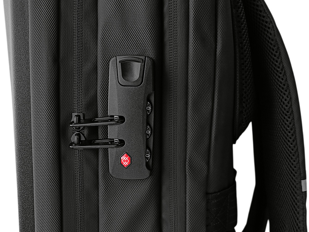 Водостойкий бизнес-рюкзак с пластиковой панелью спереди выглядит стильно и обеспечивает бережное хранение ваших личных вещей. Подходит для передвижений по городу и деловых поездок. 2 вместительных отделения позволяют разместить все необходимое: большое отделение для одежды с фиксирующими ремнями и органайзером, меньшее отделение с карманами для ноутбука и планшета и сетчатым органайзером. Несанкционированный доступ к содержимому вашего рюкзака будет затруднён благодаря кодовому замку и прочной пластиковой панели спереди. В рюкзаке предусмотрено много дополнительных удобств для использования: