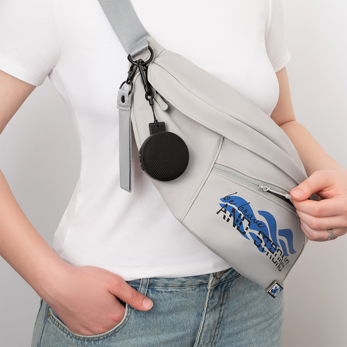 Благодаря трём вариантам крепления – зажим, карабин и магнитное крепление (совместимо с MagSafe) – SnapBeat становится неотъемлемой частью вашего стиля. Зафиксируйте её на одежде, рюкзаке или даже на смартфоне в качестве стильного поп-сокета. А когда захочется посмотреть видео, колонка легко превращается в удобную подставку для телефона.