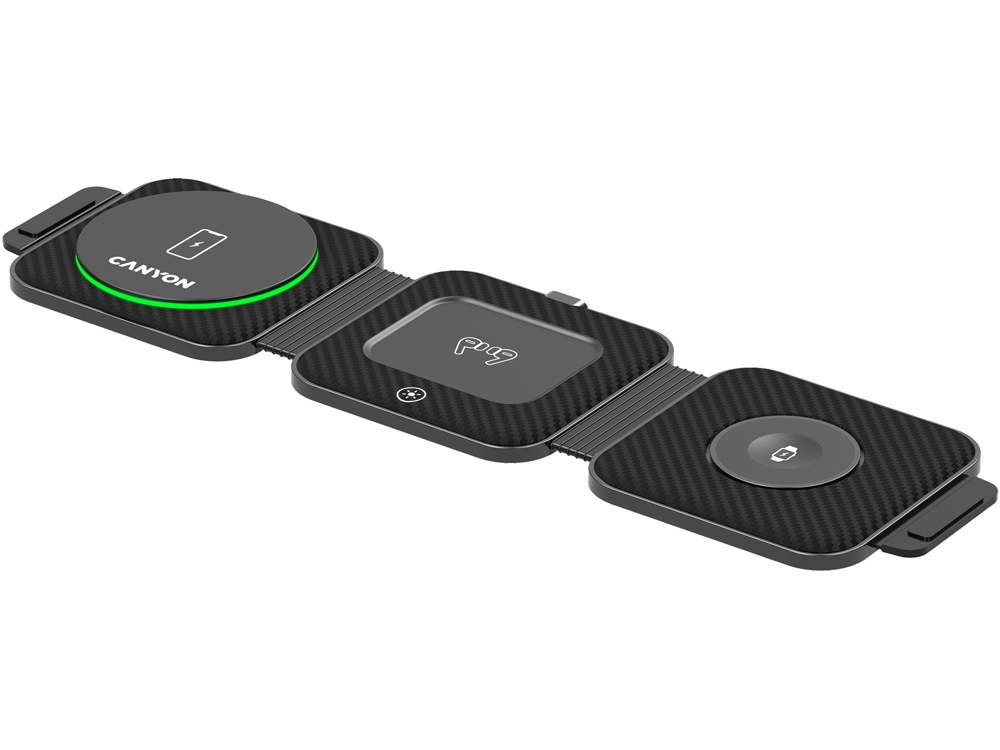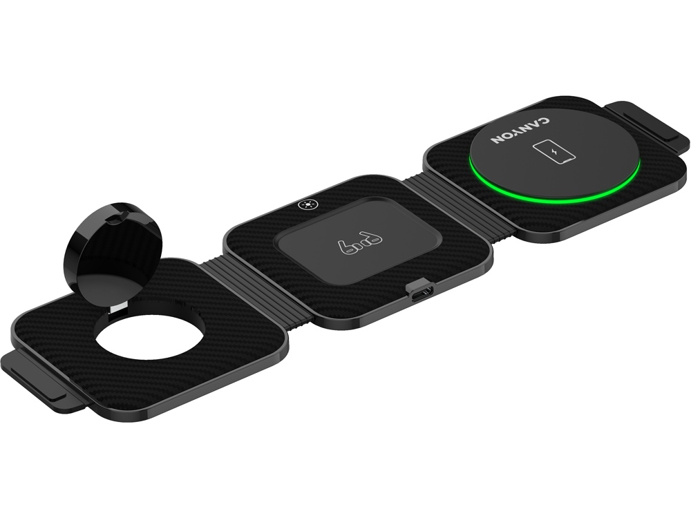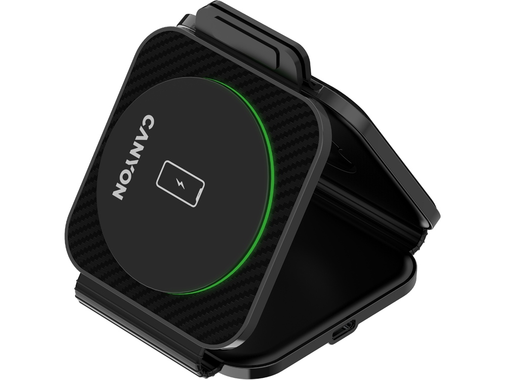Познакомьтесь с зарядной станцией Canyon WCS-305 — отличным решением для избавления от путаницы зарядных кабелей. Совместимая с большинством смартфонов и устройств, соответствующих стандарту Qi, включая iPhone, Apple Watch и AirPods, эта компактная станция является настоящей многозадачной и позволяет заряжать до трех устройств одновременно. Она поддерживает технологию быстрой зарядки, защищает устройства от перегрева и других угроз и контролирует процесс зарядки. В сложенном виде WS-305 имеет карманный размер. Вы можете придать ей форму треугольника, и он станет универсальным держателем для телефона, позволяющим разместить ваше устройство вертикально или горизонтально. Беспокоитесь о том, чтобы продолжать свои дела? Нет проблем! Высокая эффективная дальность зарядки станции гарантирует, что ваши устройства будут заряжаться без особых усилий, а их корпуса останутся нетронутыми. Ваши гаджеты будут в безопасности благодаря противоскользящему покрытию, обеспечивающему дополнительную защиту, а светодиодная подсветка с первого взгляда информирует вас о происходящем. Готовы избавиться от этих надоедливых проводов прямо сейчас?