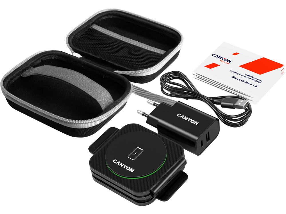 Познакомьтесь с зарядной станцией Canyon WCS-305 — отличным решением для избавления от путаницы зарядных кабелей. Совместимая с большинством смартфонов и устройств, соответствующих стандарту Qi, включая iPhone, Apple Watch и AirPods, эта компактная станция является настоящей многозадачной и позволяет заряжать до трех устройств одновременно. Она поддерживает технологию быстрой зарядки, защищает устройства от перегрева и других угроз и контролирует процесс зарядки. В сложенном виде WS-305 имеет карманный размер. Вы можете придать ей форму треугольника, и он станет универсальным держателем для телефона, позволяющим разместить ваше устройство вертикально или горизонтально. Беспокоитесь о том, чтобы продолжать свои дела? Нет проблем! Высокая эффективная дальность зарядки станции гарантирует, что ваши устройства будут заряжаться без особых усилий, а их корпуса останутся нетронутыми. Ваши гаджеты будут в безопасности благодаря противоскользящему покрытию, обеспечивающему дополнительную защиту, а светодиодная подсветка с первого взгляда информирует вас о происходящем. Готовы избавиться от этих надоедливых проводов прямо сейчас?