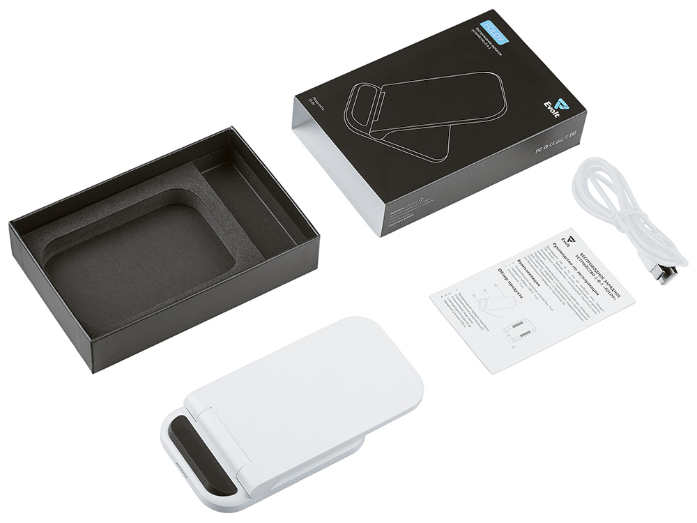 Идеальное решение для современного пользователя 2-в-1 — универсальная беспроводная зарядка-подставка. Два центра зарядки позволяют удобно размещать смартфон как в вертикальном, так и в горизонтальном положении. Благодаря складной конструкции устройство легко помещается в сумку или на полку, не занимая лишнего места на рабочем столе. А если вы хотите превратить зарядку в персонализированный подарок или рекламный сувенир — передняя панель подставки может быть полностью запечатана ярким УФ-изображением любого дизайна. Стильная, функциональная и компактная — ваш телефон всегда будет заряжен и в порядке. Мощность беспроводной зарядки до 15 Вт (при наличии сетевого адаптера 18 Вт и выше). Поставляется в стильной коробке-слайдере.