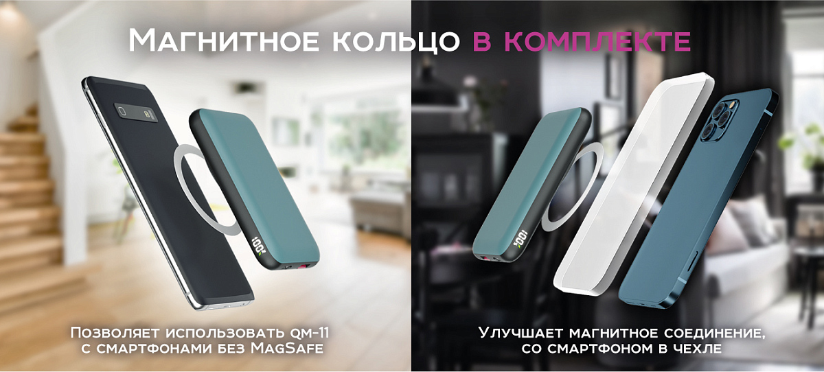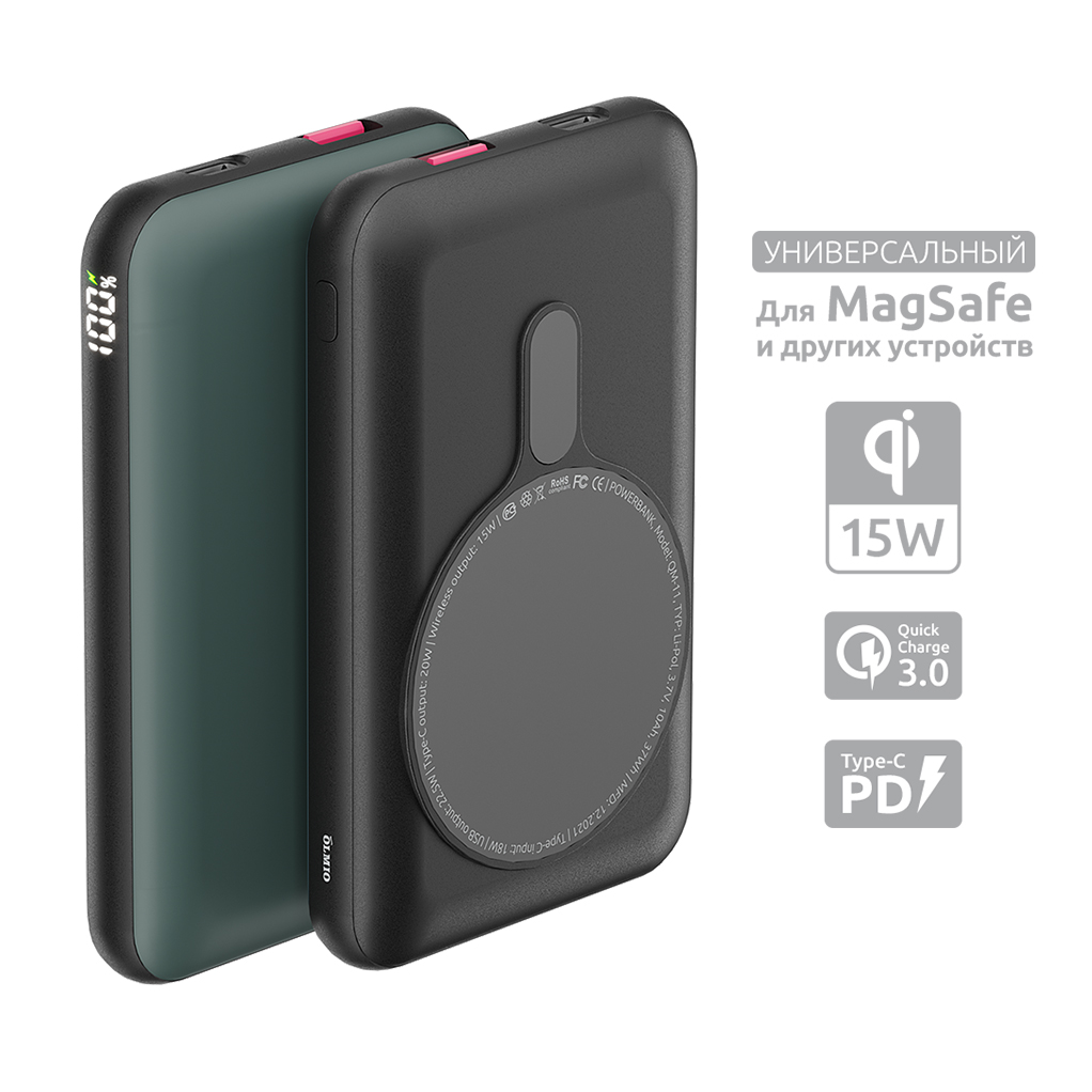 Особенности: PowerBank поддерживает технологию MagSafe и примагничивается к девайсам либо к чехлам, обладающими этой технологией; поддерживает новейшие технологии быстрой зарядки: PowerDelivery и QuickCharge 3.0; возможность использования со смартфонами без поддержки технологии MagSafe