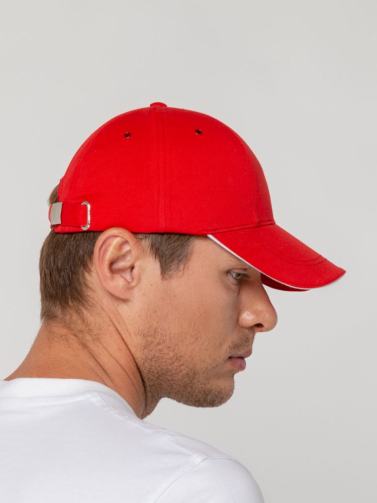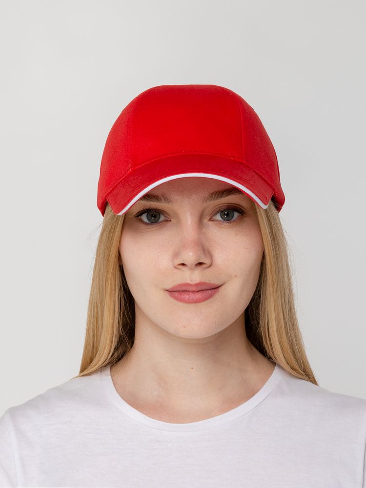 Бейсболка Canopy, красная с белым кантом можно заказать в нашей компании по самой доступной цене от 596 рублей.