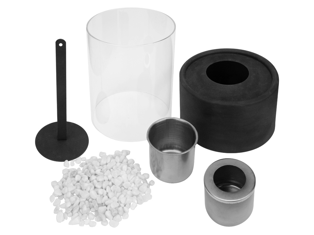 Комплектность: биокамин со стеклянной колбой- 1шт, емкость для топлива- 1шт, декоративные камни, заглушка для тушения пламени- 1шт, инструкция по применению