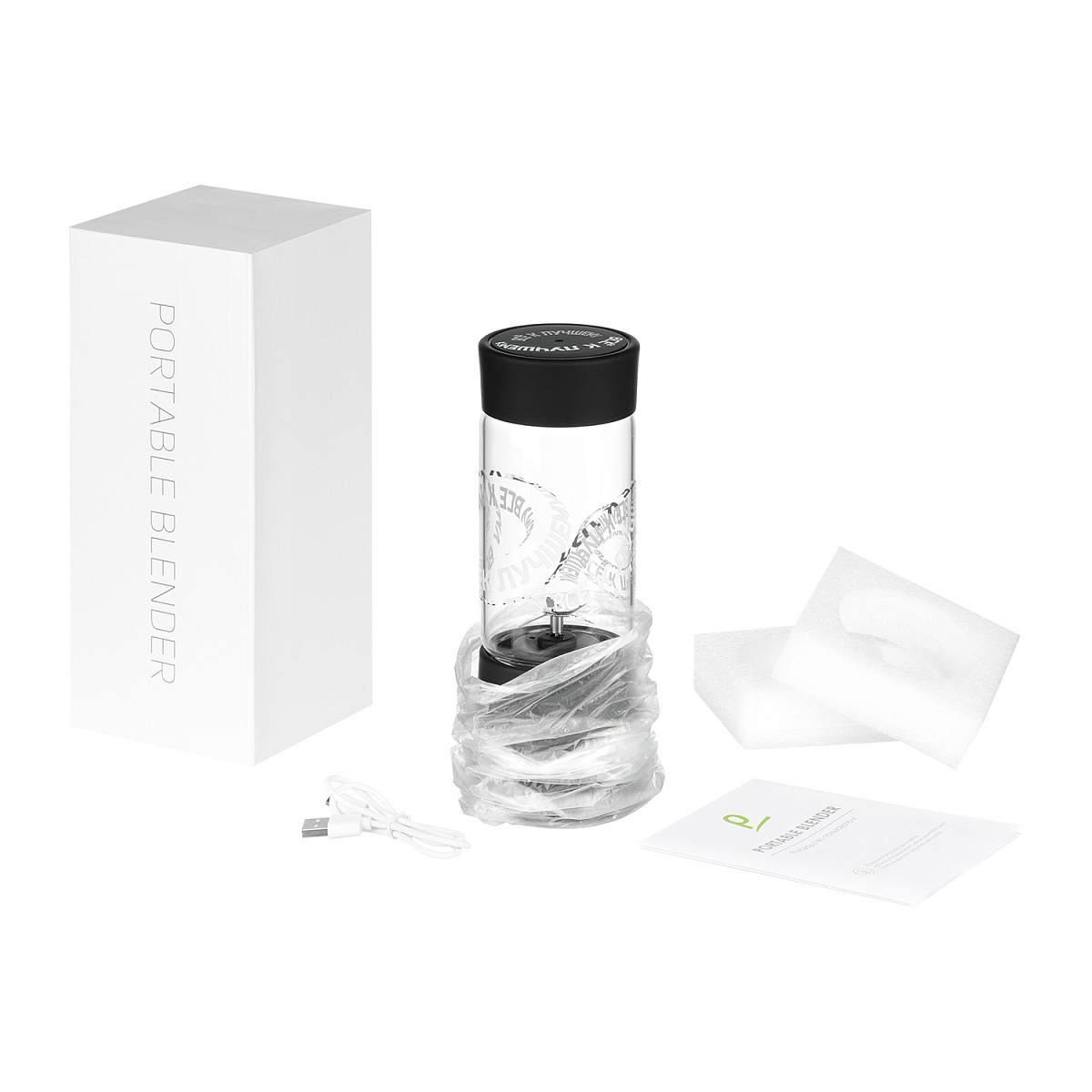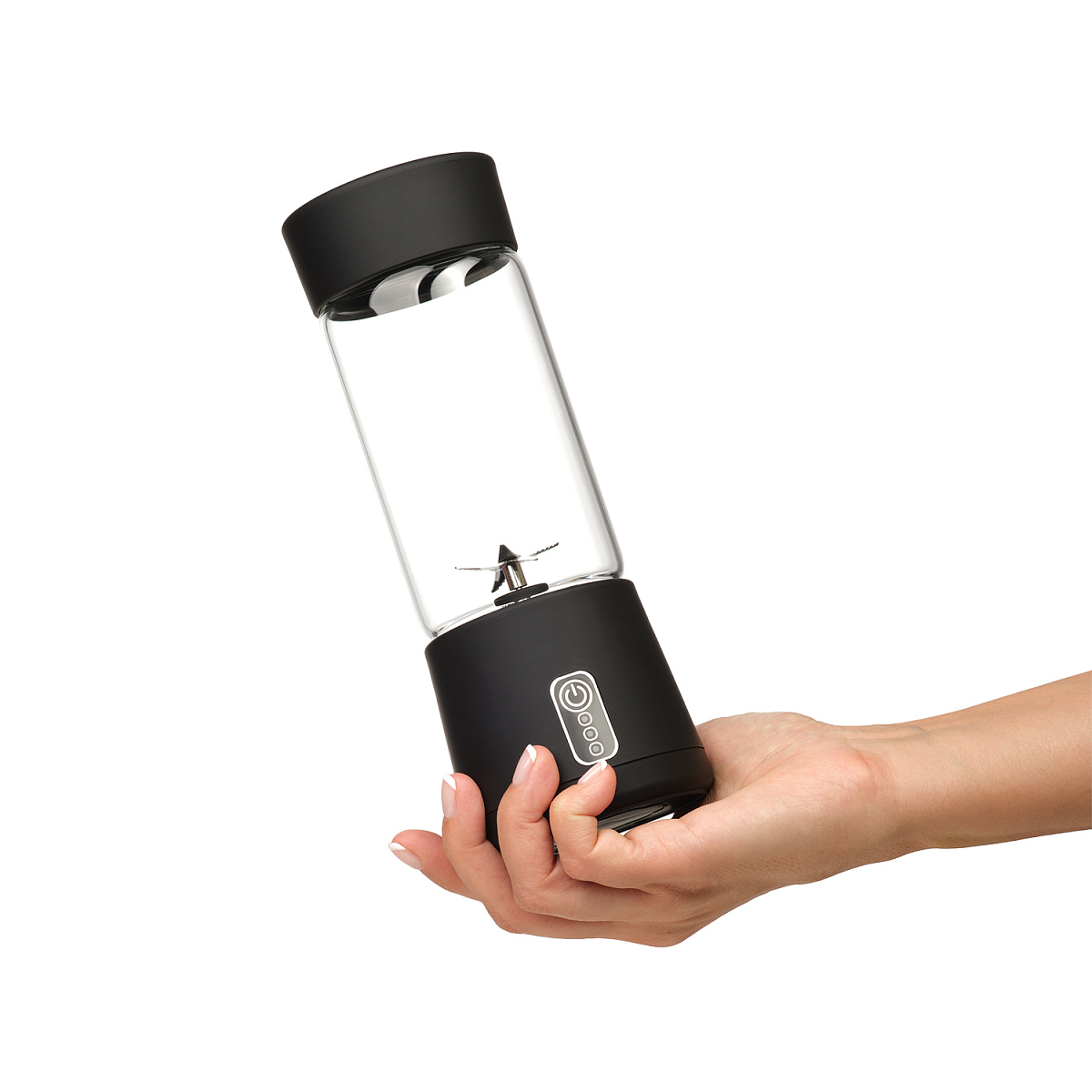 Колба выполнена из стекла, корпус – из PP-пластика, лезвия – из нержавеющей стали 304 марки.