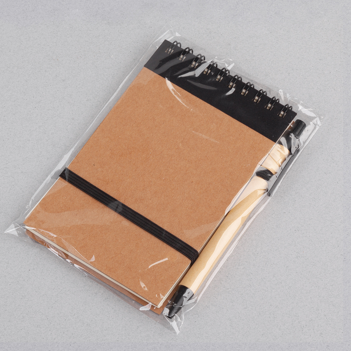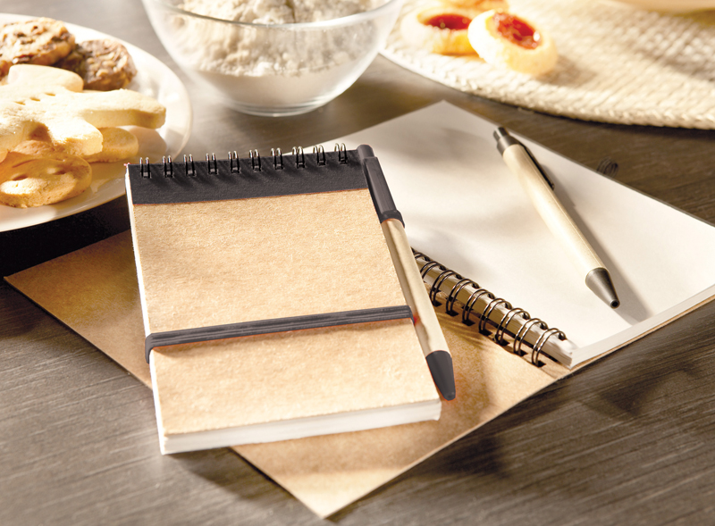 Блокнот - переработанный картон, ручка - переработанный пластик, паста черного цвета, 70 листов, без разлиновки