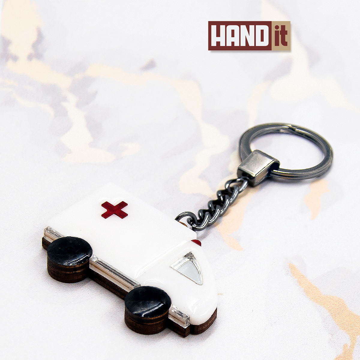Брелок "Скорая помощь", серия Industrial - изделие с отраслевой тематикой, сделано вручную российскими мастерами. Брелок имеет интересный и оригинальный дизайн, который отличается от обычных брелоков. Он отлично подойдет для продвижения вашего бренда или целой отрасли.