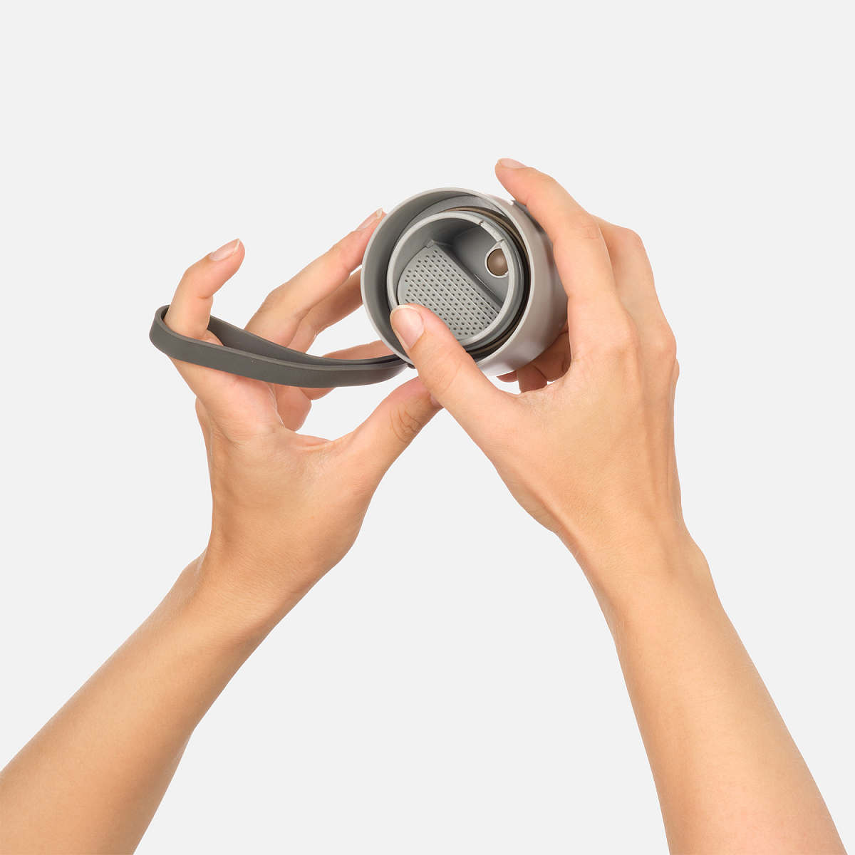 У спортивной бутылки предусмотрен силиконовый ремешок для удобной переноски.