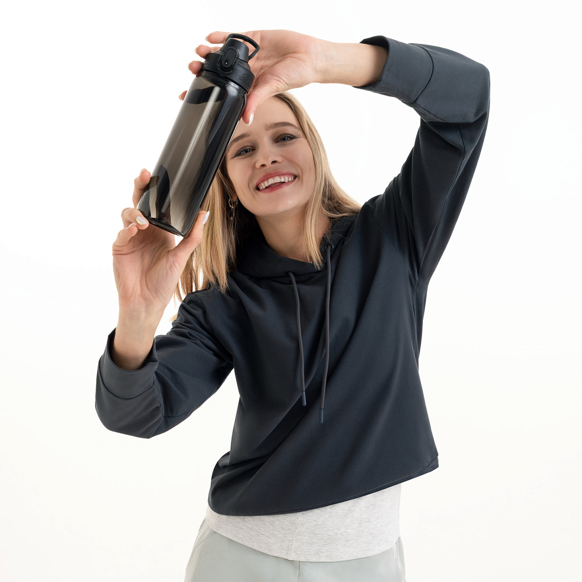 Благодаря широкому горлышку и встроенному ситечку-фильтру в бутылку можно добавлять различные ягоды или фрукты – кусочки не будут попадать в питьевое горлышко.