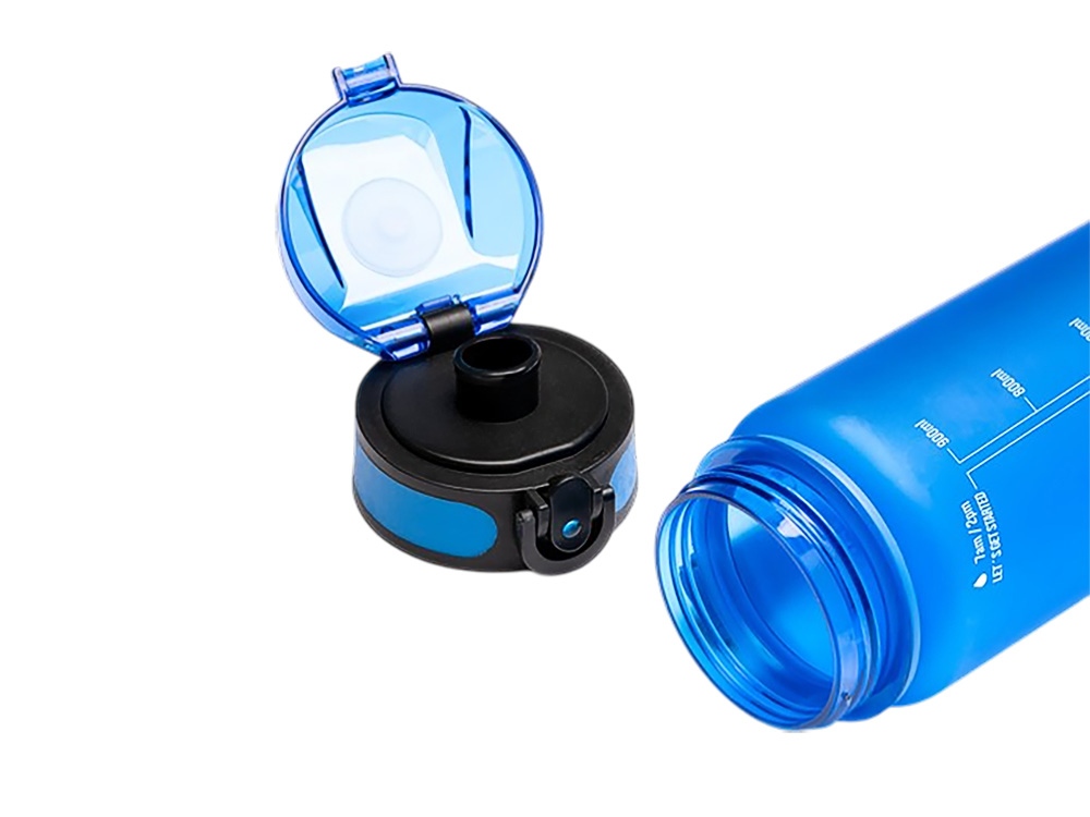 Прозрачная спортивная бутылка из пластика PCTG с крышкой-носиком для питья и ручкой для переноски. Мотивационные отметки и индикатор ёмкости. Объем: 1 л. Поставляется в индивидуальной упаковке.