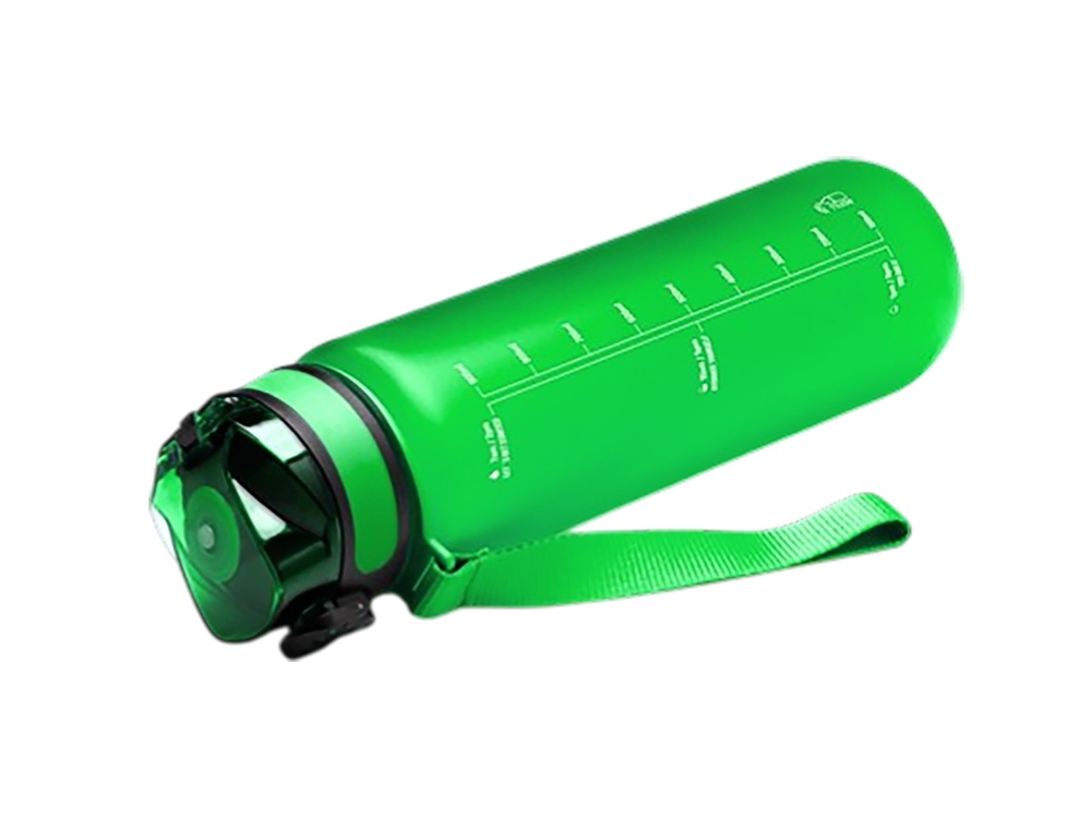 Прозрачная спортивная бутылка из пластика PCTG с крышкой-носиком для питья и ручкой для переноски. Мотивационные отметки и индикатор ёмкости. Объем: 1 л. Поставляется в индивидуальной упаковке.