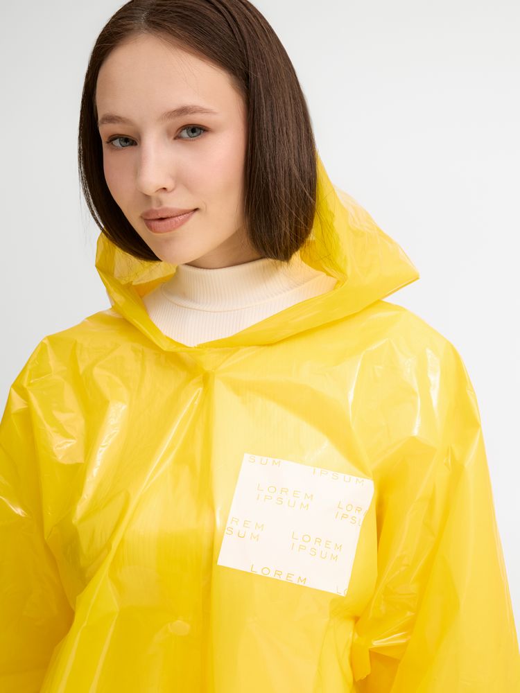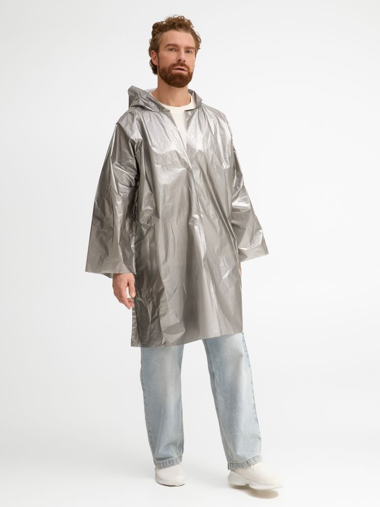 Дождевик-плащ с капюшоном и длинным рукавом из плотного полиэтилена высокого давления (ПВД).