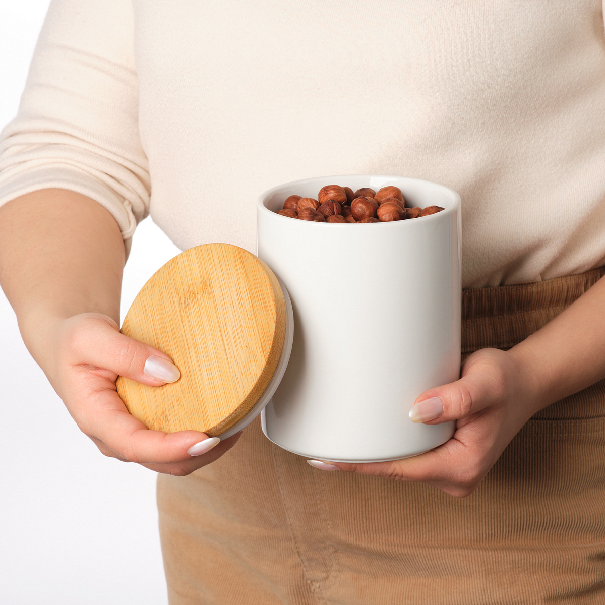 Крышка из натурального бамбука оснащена силиконовым уплотнителем для лучшей герметичности. Она защитит содержимое от повышенной влажности и попадания посторонних предметов.