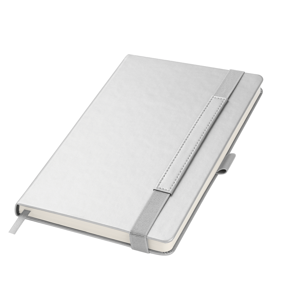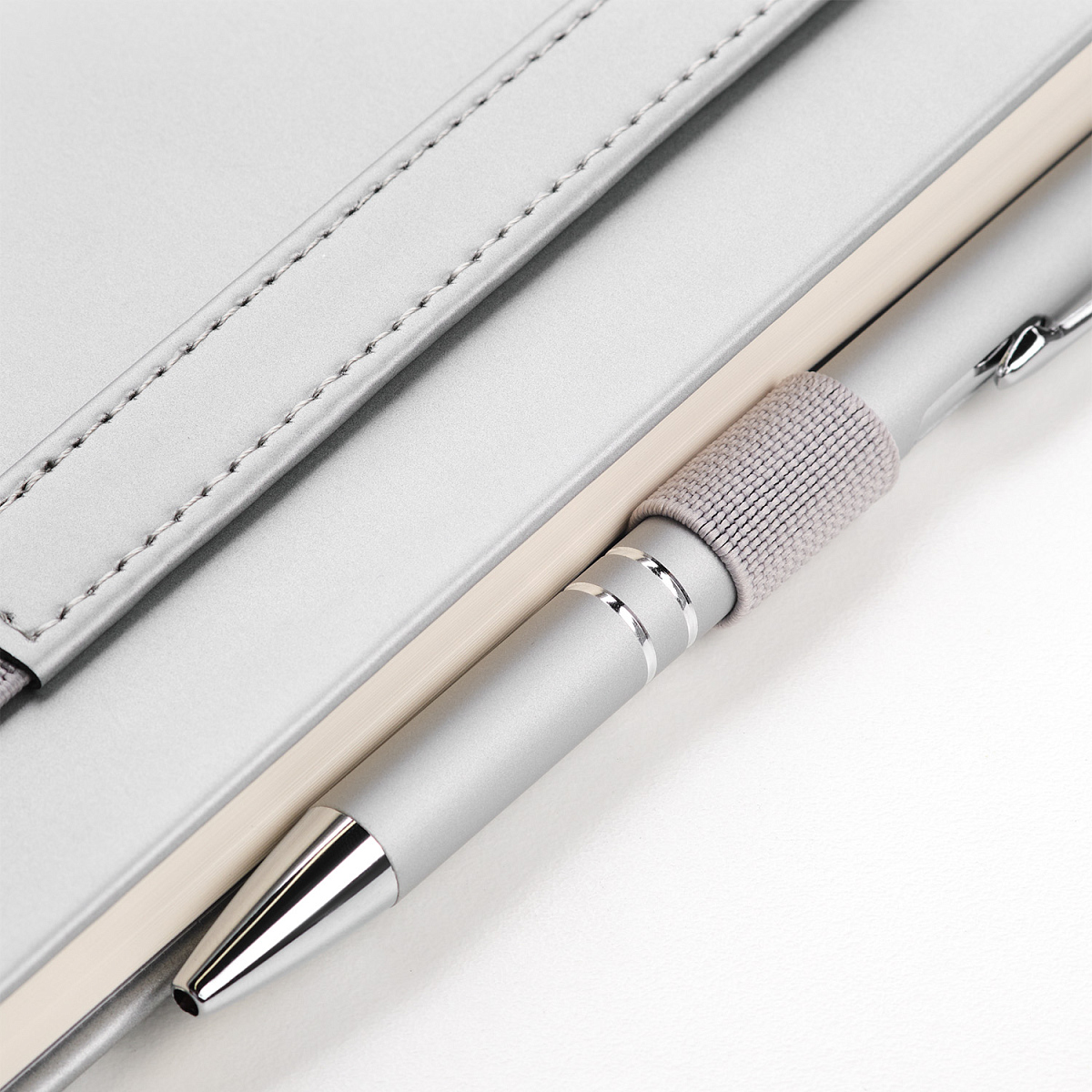 Вертикальная резинка-фиксатор с вставкой из ПУ-материала обложки и петелька под ручку, в цвет обложки