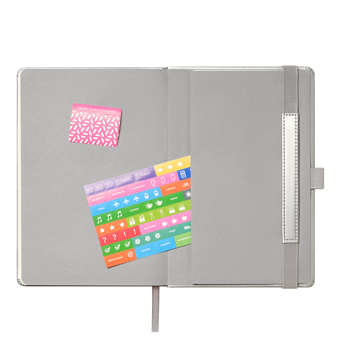 Страницы теплого кремового оттенка с легкой шелковистостью и скругленными уголками радуют глаз и приятны на ощупь. Матовый срез в тон страниц дополняет гармоничный образ. Атласное ляссе, подобранное в тон обложке, с легким блеском и шелковистой текстурой поможет вам быстро найти нужную страницу.