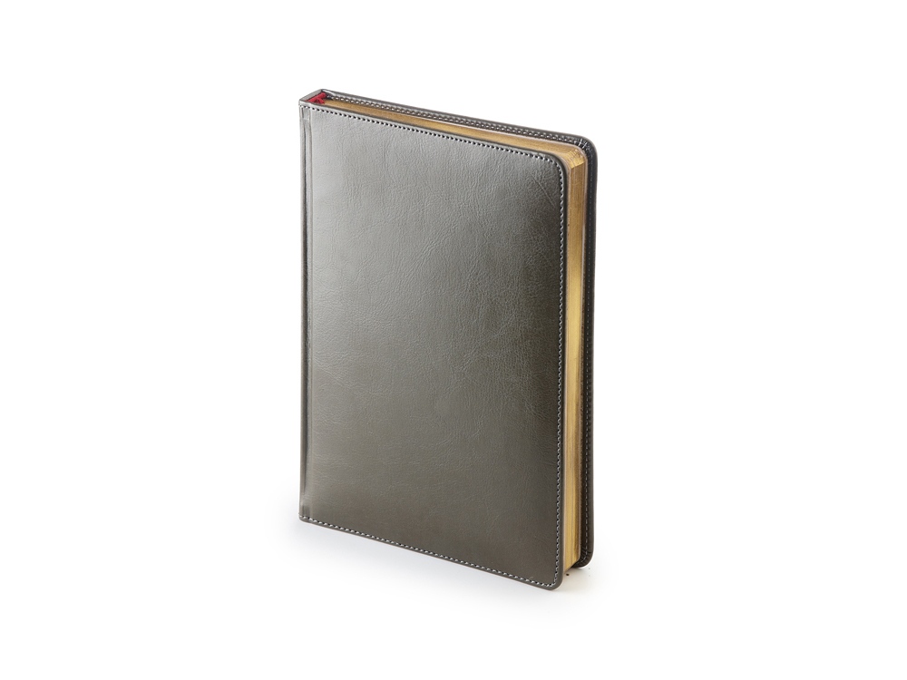 Благородство и статусность придают ежедневнику отстрочка по периметру в тон, скругленные углы, закладка-ляссе бордового цвета, золотой срез.