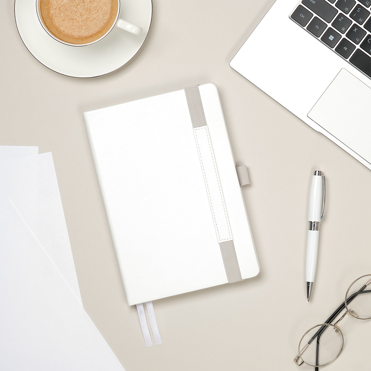 Вертикальная резинка-фиксатор с вставкой из ПУ-материала обложки и петелькой под ручку