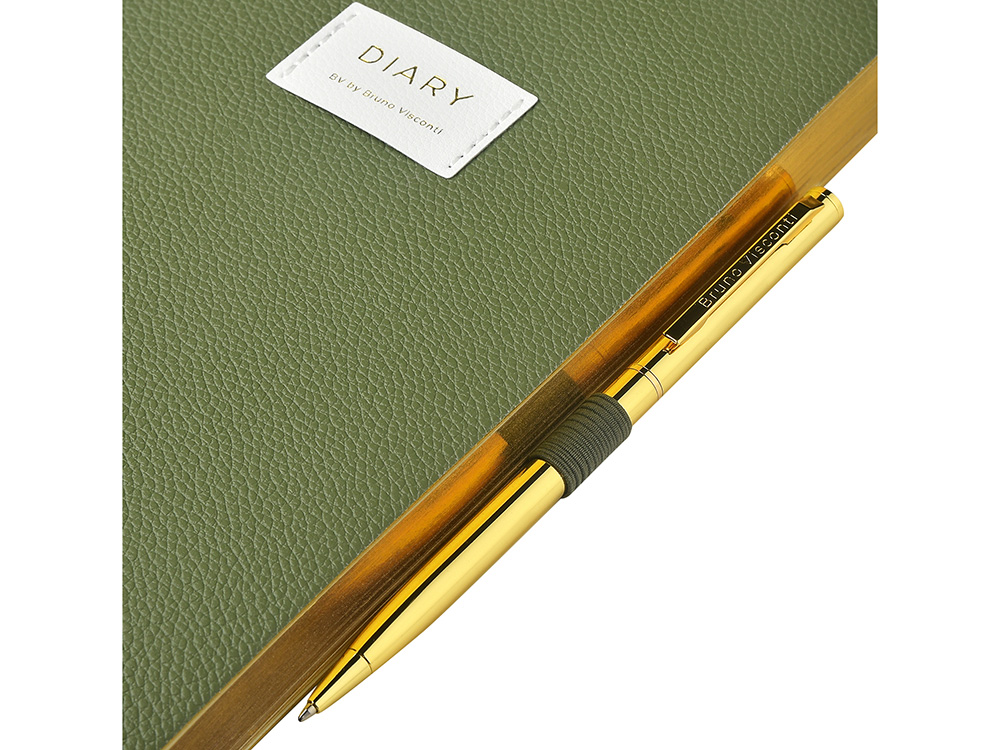 Внутри — недатированный блок формата А5 (125×200 мм) на бежевой бумаге 80 г/м². Книжный переплёт хорошо раскрывается, а скруглённые углы одновременно придают ежедневнику премиальный вид и защищают края при носке. Завершают детали ляссе в цвет обложки и петля для ручки — чтобы всё нужное было под рукой.