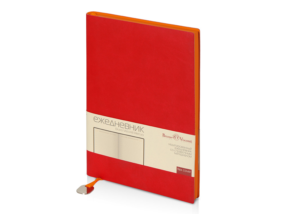Недатированный ежедневник Mercury от бренда Bruno Visconti - это качественный корпоративный подарок по выгодной цене, произведенный специально под персонализацию. Представлен в современном формате А5. Обложка ежедневника выполнена из современного переплетного материала с двойной закладкой с шильдом. Цветной край блока, а также отделка листов цветными деталями - это переплетение технологических новинок и оригинальных дизайнерских решений.