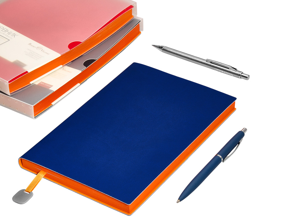 Недатированный ежедневник Mercury от бренда Bruno Visconti - это качественный корпоративный подарок по выгодной цене, произведенный специально под персонализацию. Представлен в современном формате А5. Обложка ежедневника выполнена из современного переплетного материала с двойной закладкой с шильдом. Цветной край блока, а также отделка листов цветными деталями - это переплетение технологических новинок и оригинальных дизайнерских решений.