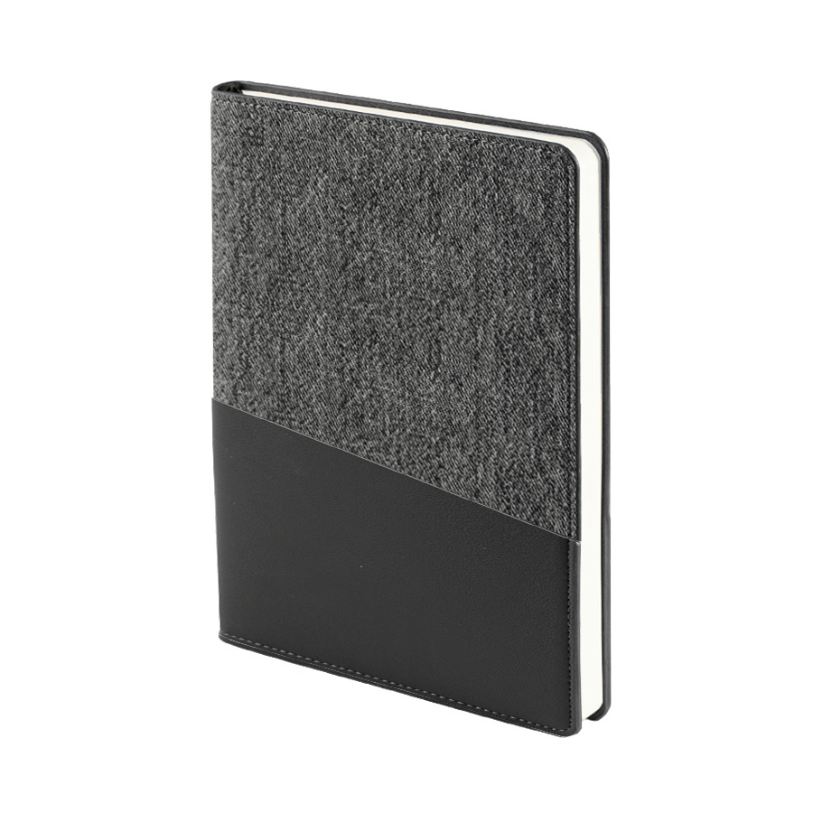 Цвет серый близкий к пантону Cool Gray С11Размер 145*205 мм, переплет твердыйКомбинированная обложка: сочетание мягкой искусственной кожи с PU напоминающую джинсовую тканьБлок недатированный, в линейку, скругленные углыБумага кремовая, плотность 70 г м2Форзац нахцаз кремовые256 страницЛяссе 7 мм в цвет обложкиУпаковка крафтовый сливбокс