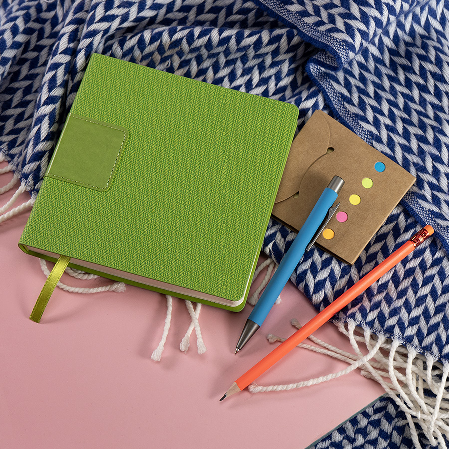 Цвет обложки, близкий к пантону 326 C Размер 150*150 мм Переплет мягкий Обложка термоактивный PU Tweed, декоративный элемент из PU Nebraska Блок недатированный, в линейку, скругленные углы Бумага кремовая, плотность 70 г м2 Форзац и нахцаз кремовые Количество страниц - 272 Каптал и ляссе в цвет обложки Упаковка крафтовый сливбоксВ данный момент происходит смена справочной части блока. Внешний вид изделия остается без изменений.