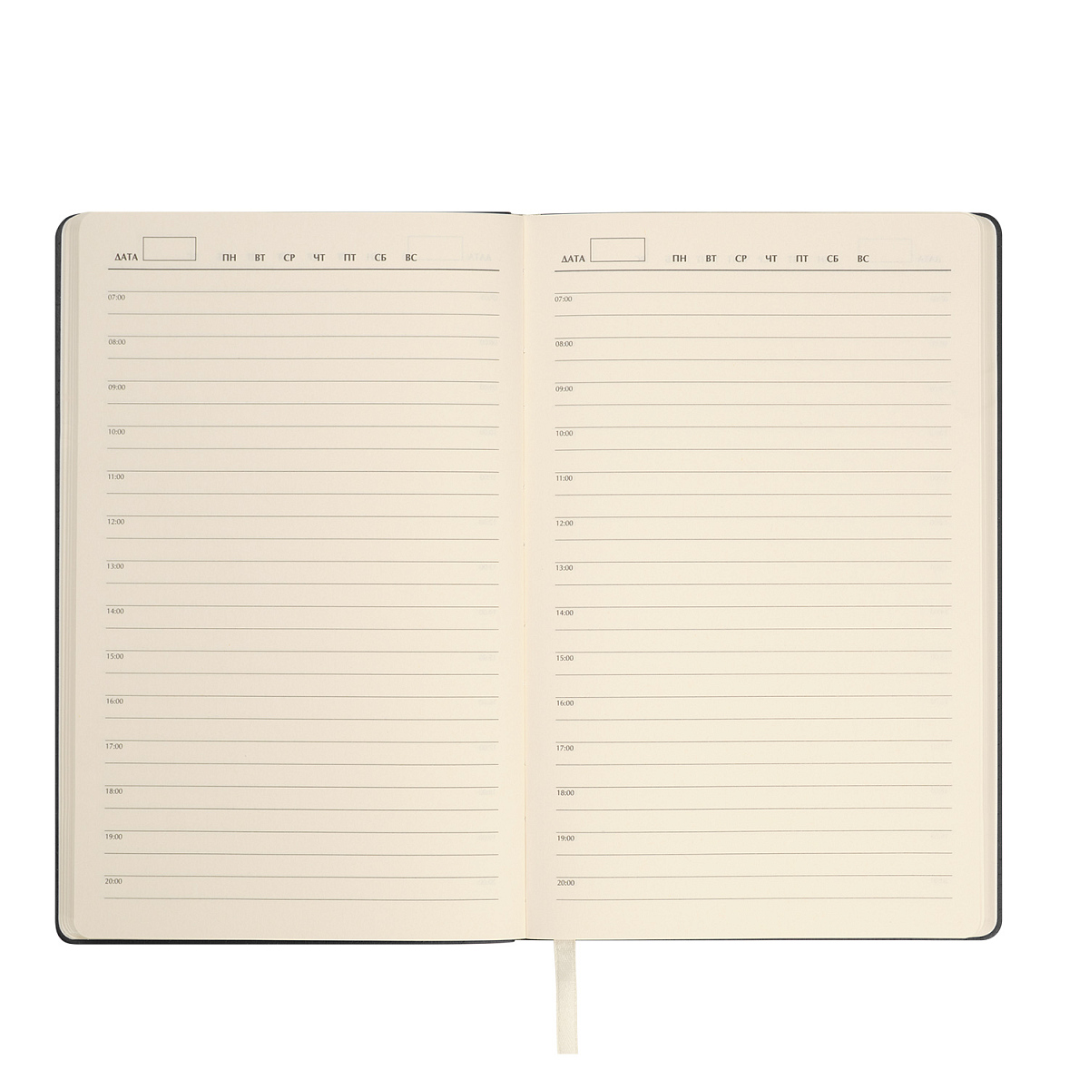 Кремовые форзацы и гладкие шелковистые страницы из офсета со скругленными уголками обеспечат максимальный комфорт при письме. Элегантное атласное ляссе поможет быстро найти нужную страницу. Этот ежедневник — воплощение изысканной простоты и практичности.