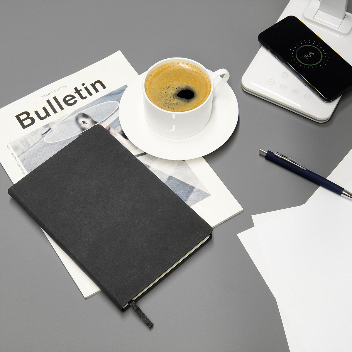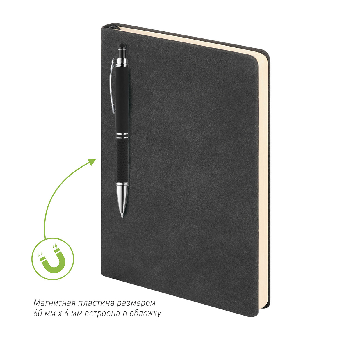 Обложка: жесткая, со встроенным магнитом, удерживающим ручку
