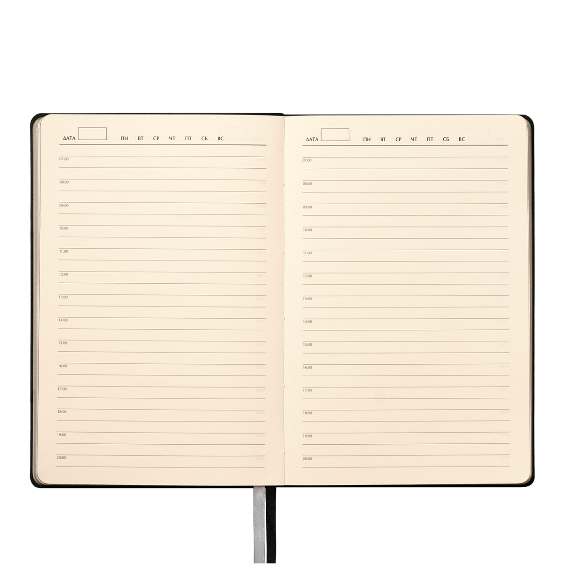 Ее уникальная твидовая фактура с мелким рельефным плетением создает изысканный вид. Внутри – кремовые страницы из гладкого, слегка шелковистого офсета, также со скругленными уголками, идеальные для письма. Двойное атласное ляссе поможет легко ориентироваться в записях.