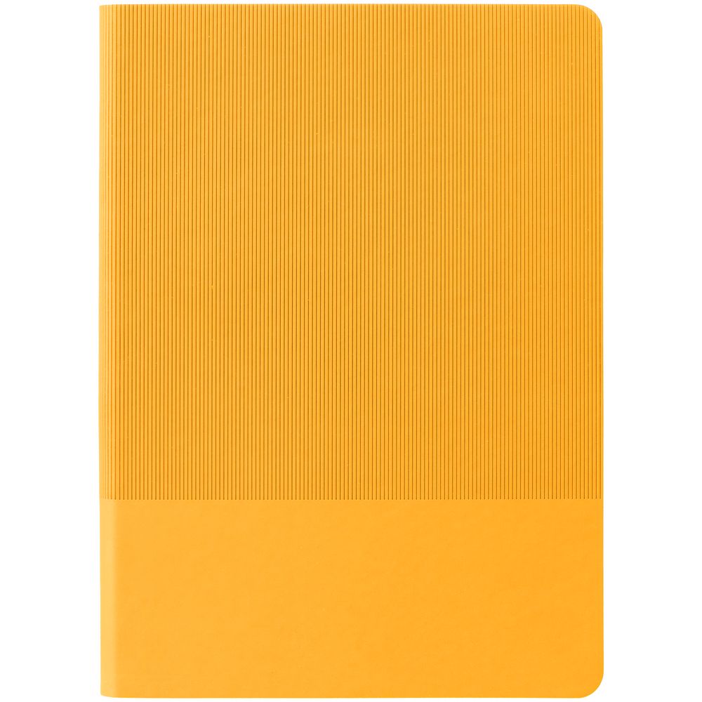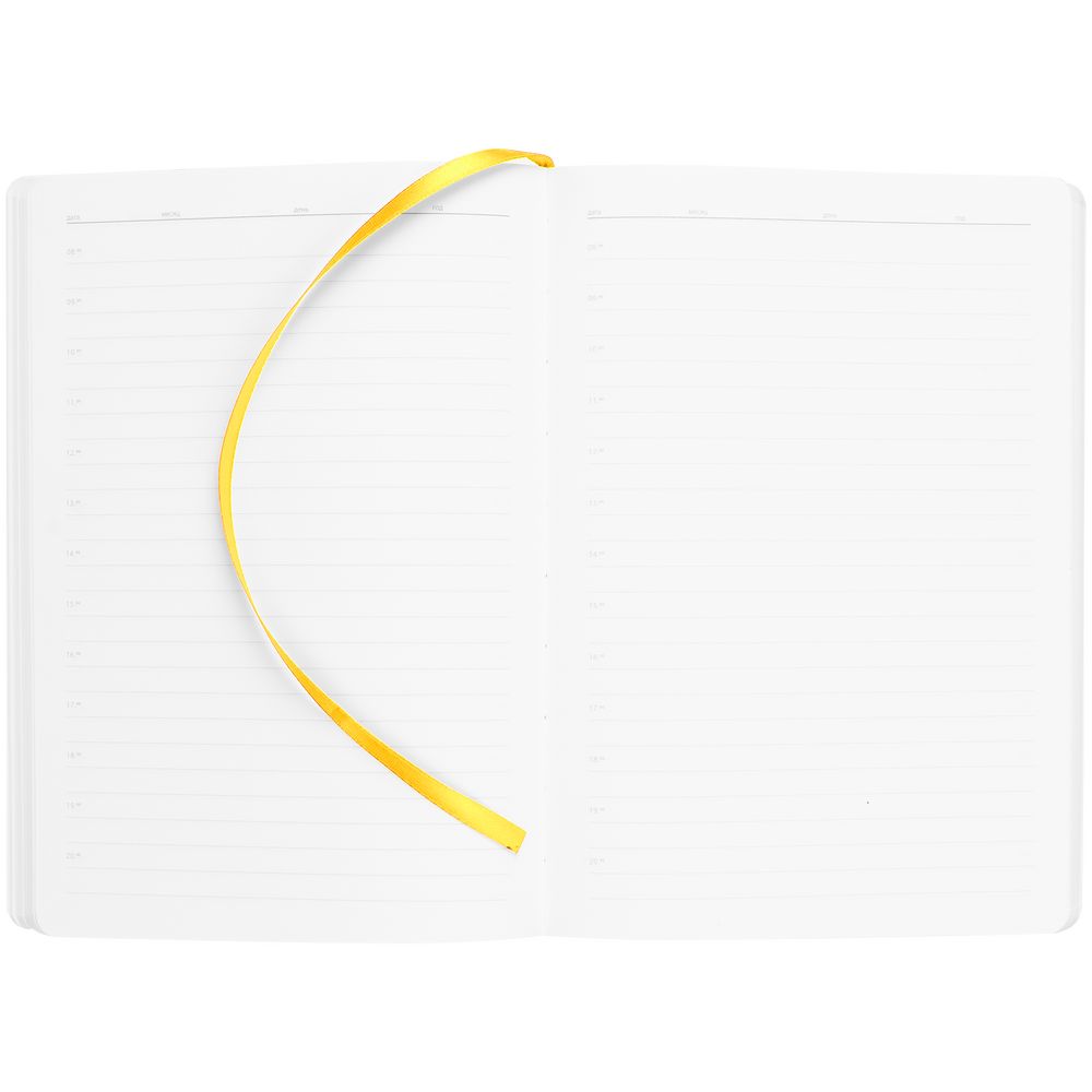 Ежедневник с гибкой обложкой выполнен из материала Soft Touch, желтый KK и Latte, желтый (внутренний материал), дополнен ляссе желтого цвета и фактурным тиснением обложки.