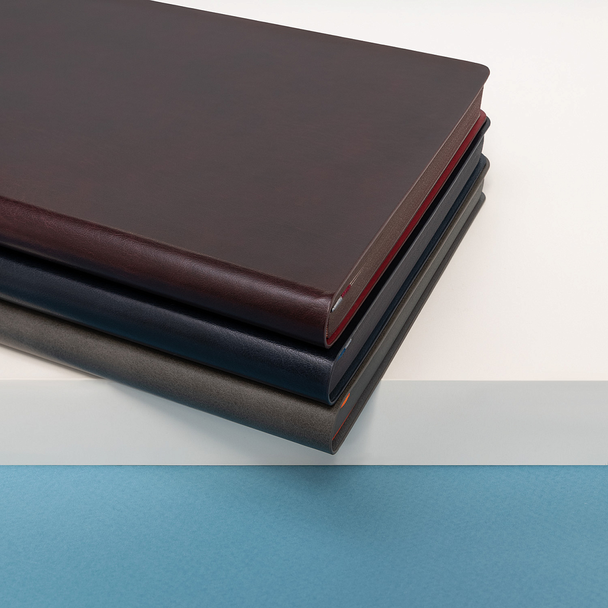Матовые форзац и нахзац служат элегантным обрамлением для теплых кремовых страниц из гладкого шелковистого офсета со скругленными уголками. Матовый срез гармонично дополняет общую композицию. Удобное двойное атласное ляссе, состоящее из серой ленты и ленты в цвет обложки с легким блеском, поможет вам быстро найти нужную страницу.