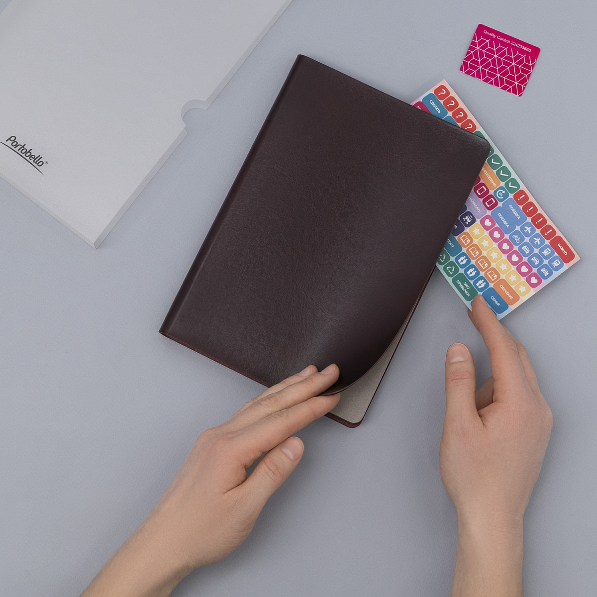Яркий и одновременно лаконичный недатированный ежедневник Voyage воплощает современный дизайн и изысканный стиль. Гибкая обложка из искусственной кожи с полуглянцевым покрытием и скругленными уголками привлекает внимание своей необычной фактурой – едва заметной сеткой мелких морщинок и прожилок, напоминающих натуральную кожу. Спокойный, естественный цвет с неоднородным мраморным рисунком и плавными переходами от темного к светлому оттенку добавляет обложке глубину и изысканность.