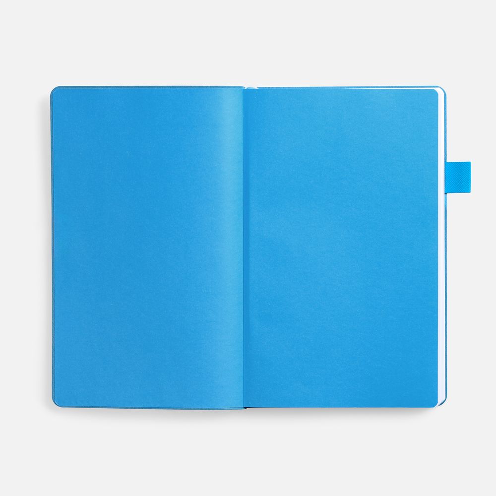 Гибкая обложка, материал обложки — Soft Touch, белый BB и Latte, цвета морской волны II, материал петли для ручки — Nice Touch, цвета морской волны II. Срез обложки окрашен в цвет морской волны.