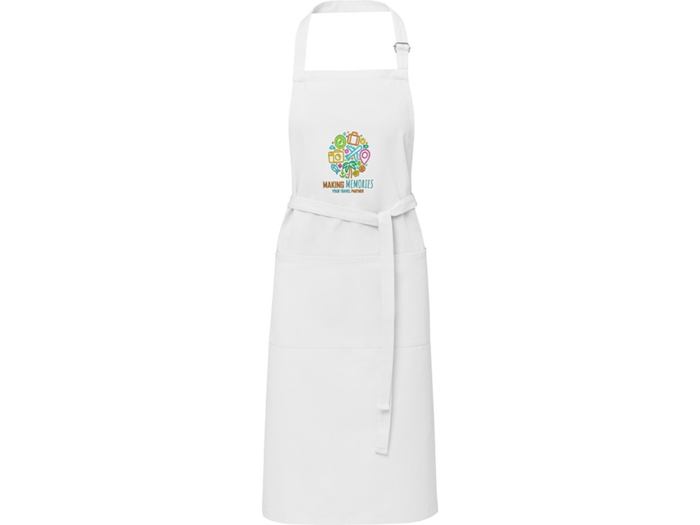 Защитить красивую одежду во время приготовления пищи легко благодаря фартуку Andrea. Фартук изготовлен из саржи плотностью 240 г/м² (65 % полиэстер и 35 % хлопок), что делает его плотным и прочным, но при этом мягким и удобным при ношении. Два передних кармана предлагают быстрый и простой способ хранения кухонных принадлежностей. Фартук регулируется с помощью пряжки на шее и завязок на спине, что делает его универсальным для всех размеров.