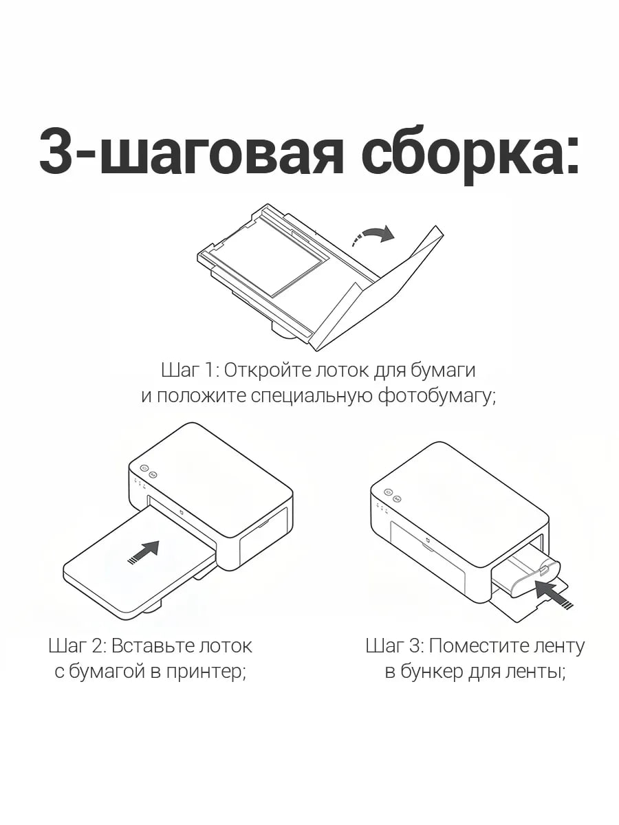 Виды расходных материалов: Xiaomi Portable Dye-Sublimation Photo Paper (20 Sheets), Xiaomi Portable Dye-Sublimation Photo Paper (50 Sheets), Xiaomi Portable Dye-Sublimation Photo Paper Stickers (50 Sheets)