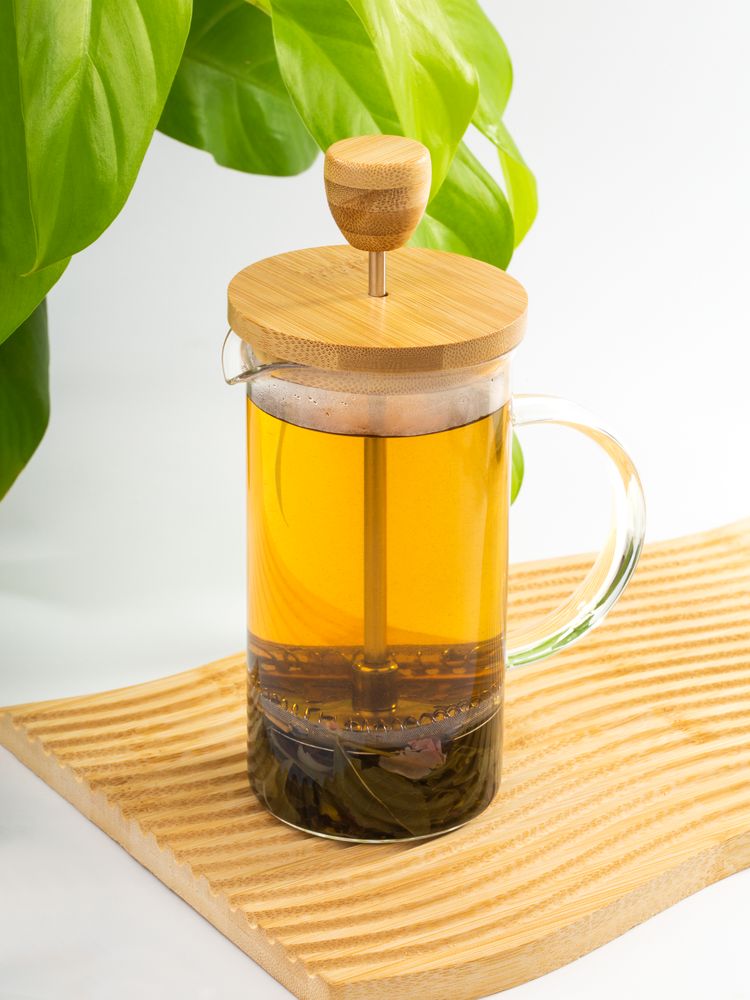 Эргономичная ручка и удобная деревянная крышка с поршнем обеспечивают легкость и комфорт в использовании. Благодаря прочному прозрачному стеклу можно наблюдать за процессом заваривания, наслаждаясь каждым этапом приготовления насыщенного и ароматного чая.