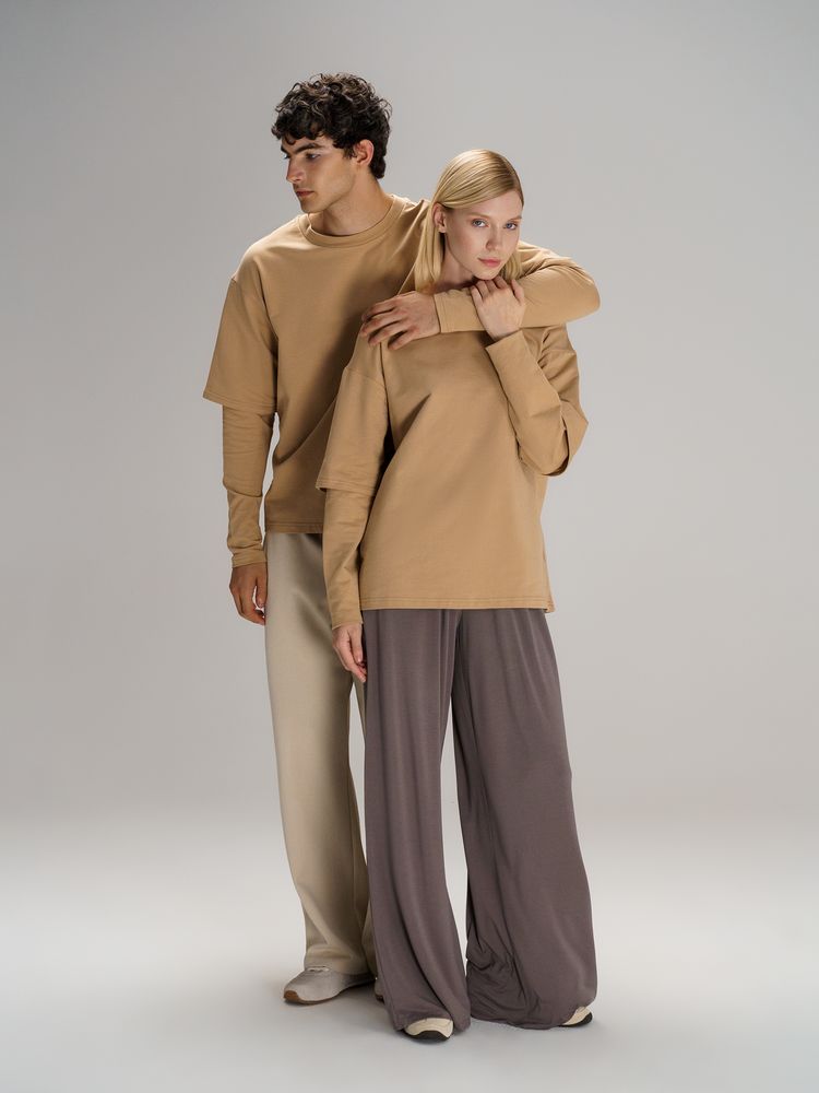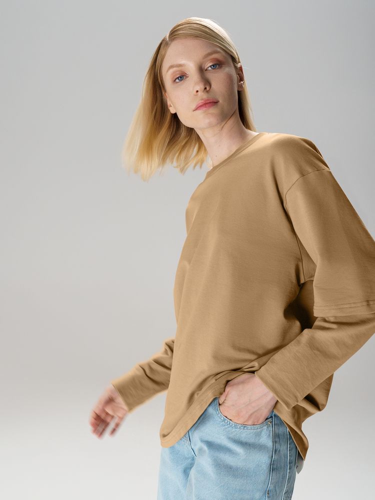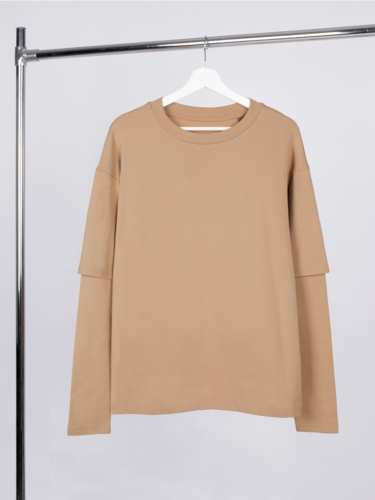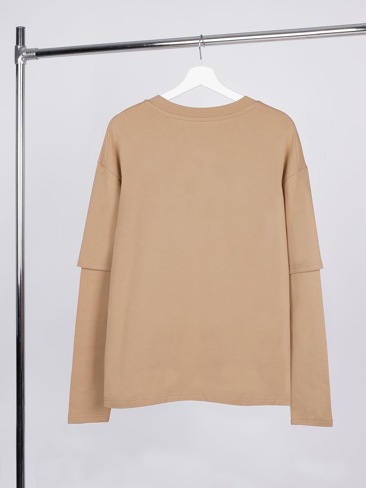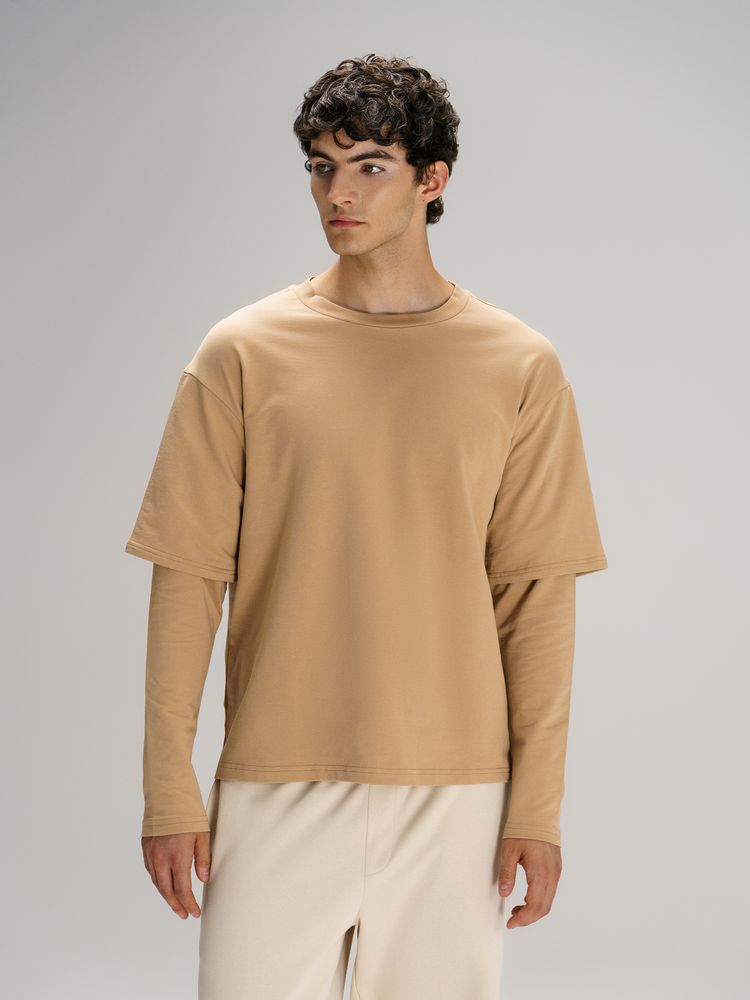 Футболка оверсайз с двойным рукавом Kosmos, бежевая можно заказать в нашей компании по самой доступной цене от 2 095 рублей.