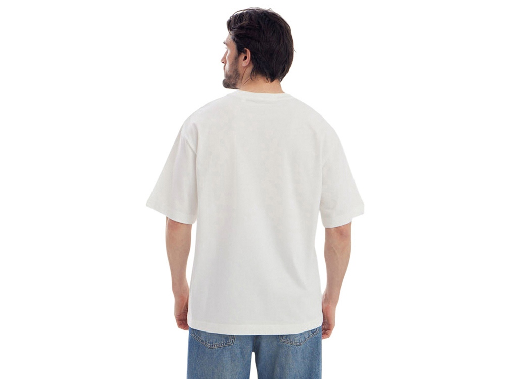 Футболка из 100% хлопкового полотна плотностью 180 г/м² — оптимальный баланс между комфортом, внешним видом и износостойкостью. Отделка пич-начёс придаёт ткани мягкую, бархатистую текстуру и благородный матовый эффект, делая изделие особенно приятным к телу.