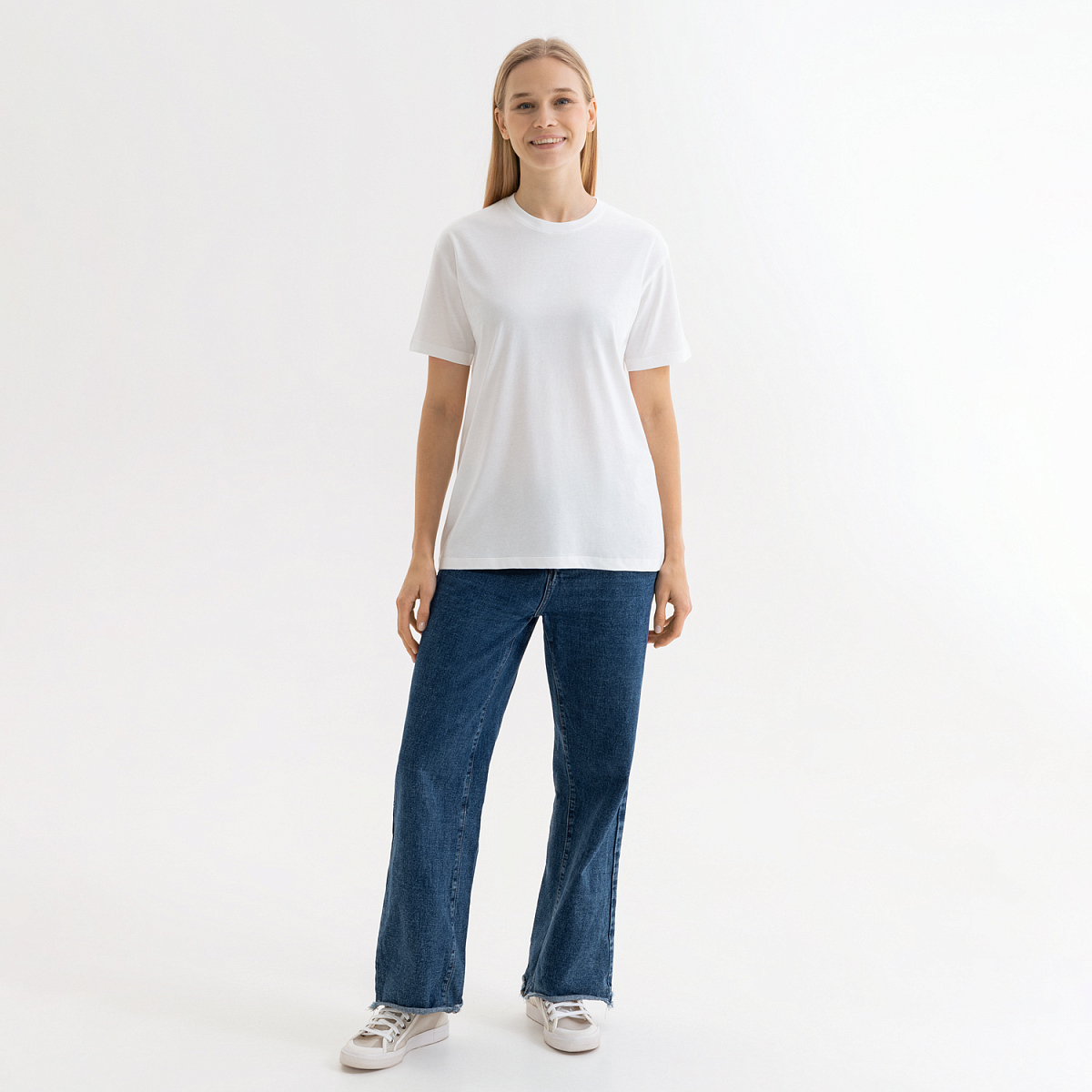 За счет продуманного кроя футболка идеально садится на разные типы фигур, создавая аккуратный силуэт.