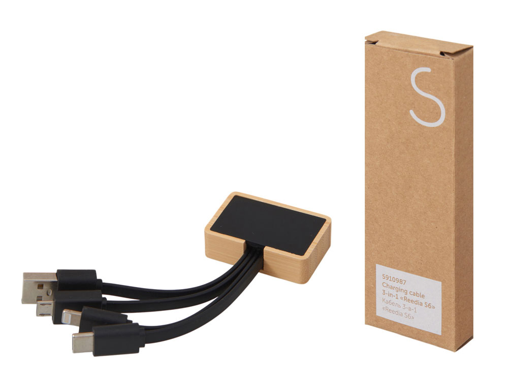 Универсальный зарядный кабель 3-в-1 — элегантное решение для владельцев любых гаджетов. С тремя разъемами (USB-C, micro USB, Lightning), он заменяет три кабеля в одном компактном корпусе, выполненном из натурального бамбука и переработанного ABS-пластика. Это не просто практичный аксессуар — это экосознательный стиль, который подчеркнёт ваш вкус и заботу об окружающей среде. Встроенная белая подсветка с возможностью нанесения логотипа добавляет изюминку: ваш бренд или инициалы мягко светятся при подключении, создавая эффект премиальности и индивидуальности. Идеален для повседневного использования, путешествий и в качестве запоминающегося корпоративного подарка.