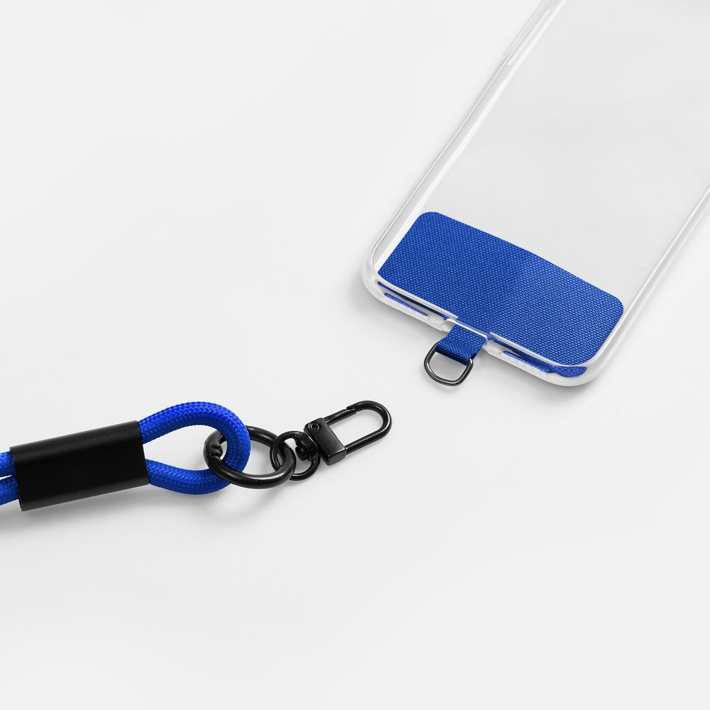 Важно: Для крепления телефона на ланьярд телефон должен иметь чехол. Если ланьярд распускается под тяжестью смартфона, убедитесь, что среднее из трех колец фурнитуры находится по центру ланьярда (на шее под затылком), а не сбоку. Соседние ветви оплетки должны идти вместе, без зазоров, так достигается трение ткани о ткань. Слишком тяжелые смартфоны (диагональ 6,9" и более) могут распускать ланьярд при энергичных движениях.