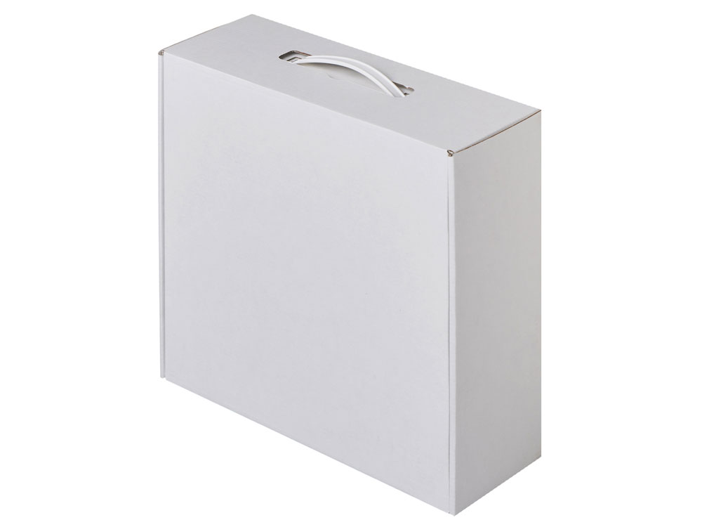 Коробка с пластиковой ручкой обеспечивает удобную функцию переноски и делает упаковку ещё более функциональной. Внутрь коробки можно поместить различные сувениры: кружку, заварочный чайник, баночку мёда или варенья. При желании можно добавить декоративный бумажный наполнитель, который подчеркнёт ваш тонкий вкус и придаст подарку завершённый вид. Съедобные товары для наполнения вы также можете заказать у нас.
