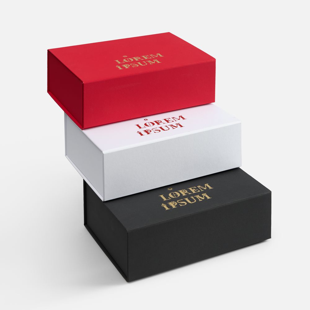 Коробка из переплетного картона, кашированного тисненой тонированной в массе бумагой, с крышкой на магните.