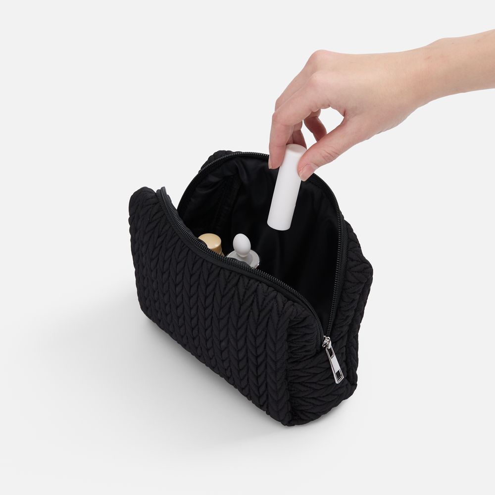 Эта косметичка создана для тех, кто ценит эстетику минимализма. Мягкая, приятная на ощупь, но при этом отлично держащая форму, она станет идеальным travel-компаньоном. В нее легко поместятся все любимые баночки, кисти и средства гигиены, при этом сама косметичка почти ничего не весит и не займет много места в сумке или чемодане.