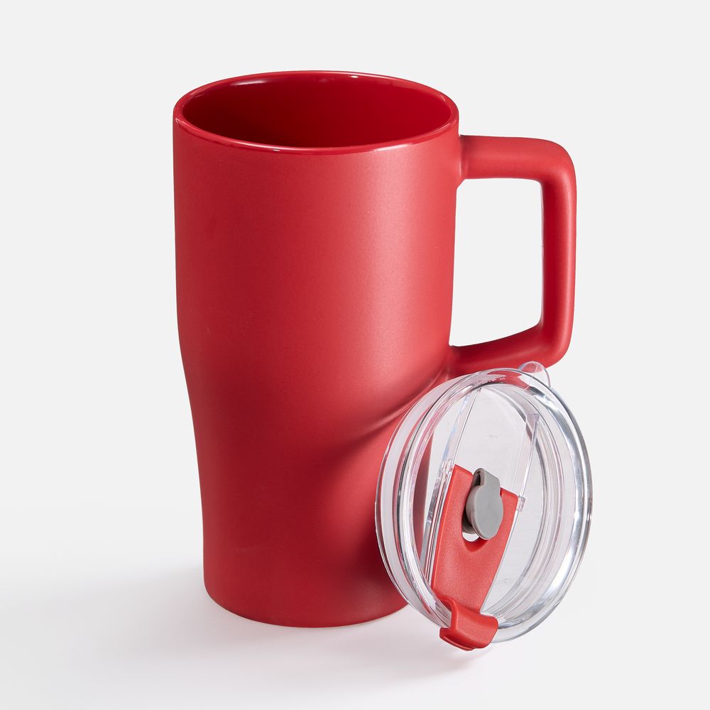 Эргономичная ручка удобно лежит в руке, а прозрачная крышка с отверстием для питья не дает содержимому разлиться на ходу или быстро остыть. Последнее особенно важно с учетом большого объема — 520 мл чая, кофе или какао хватит надолго.