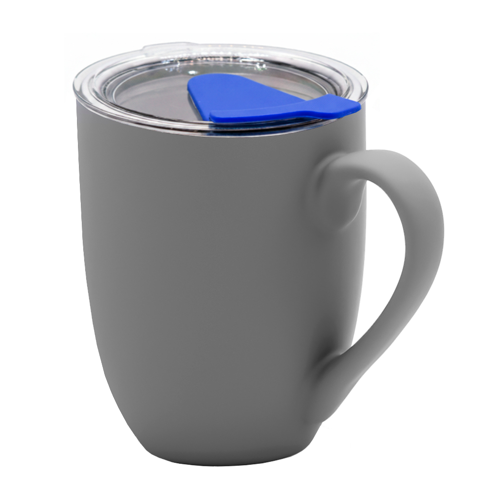 Кружка с крышкой Velvet Duo, софт-тач, тёмно-серая/синяя можно заказать в нашей компании по самой доступной цене от 472.22 рублей.