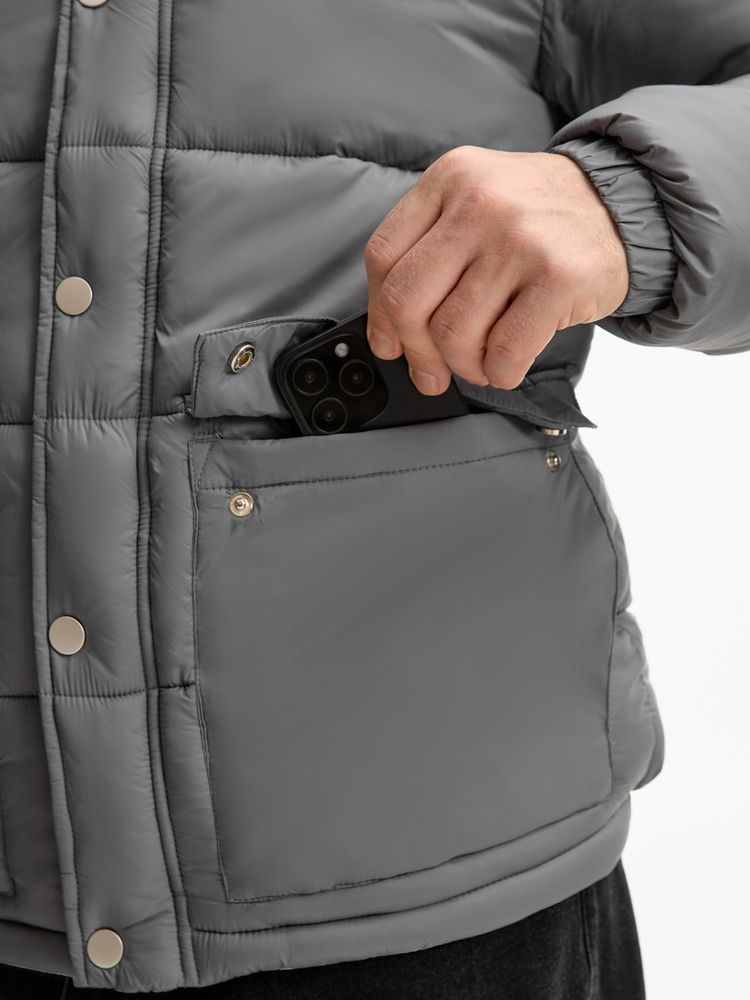 - Утепленные накладные карманы: два на кнопках с вертикальным входом и два с боковым — итого 4 кармана