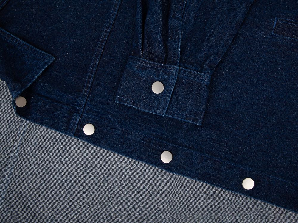 Джинсовая куртка унисекс на кнопках свободной посадки.
