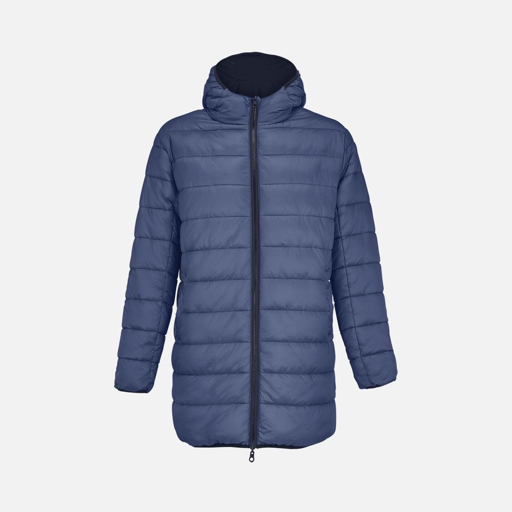 Двусторонняя утепленная парка с капюшоном. Одна сторона гладкая с водоотталкивающим покрытием, другая — стеганая. Стильная, удобная и функциональная, эта парка станет идеальным решением как для подарка, так и для повседневного использования.