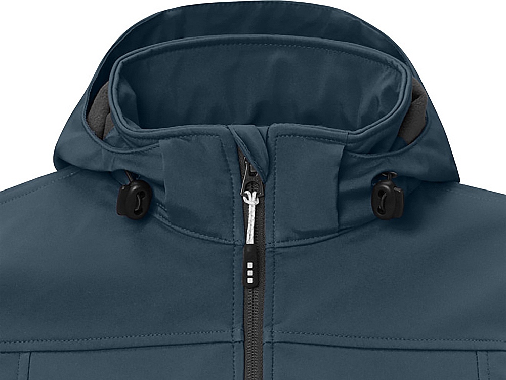 Женская куртка софтшел Ланглей. Стандартный покрой. Отстегивающийся капюшон на шнурках со стопперами. Обратная молния по центру и на карманах для рук. Регулируемые манжеты на липучках. Отражающий лого сзади. Водонепроницаемый 5000 мм. Дышащий 3000 мм. Ткань эластична в четырех направлениях. Ветронепроницаемая. Ремешки на пуллер (второй комплект в цвете антрацит). Ткань из 90% полиэстера и 10% эластана, склеенного со 100% полиэстеровым микрофлисом. 300 г/м².